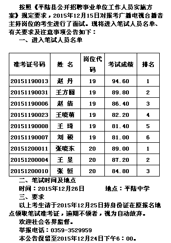 2015山西平陸縣招聘事業(yè)單位人員筆試公告(第2號)