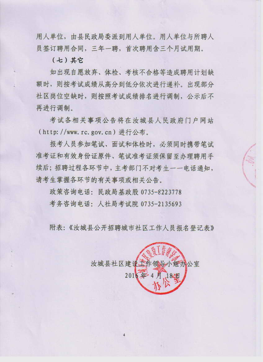 2016湖南汝城縣城市社區(qū)工作者招聘45人公告