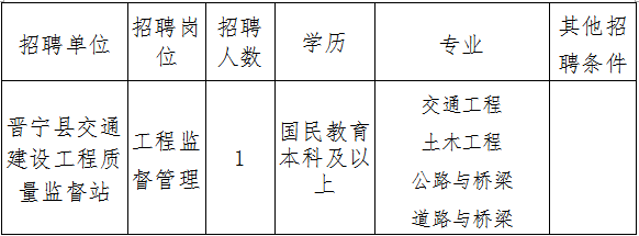 2016云南晉寧縣交通建設(shè)工程質(zhì)量監(jiān)督站招聘公告【1人】