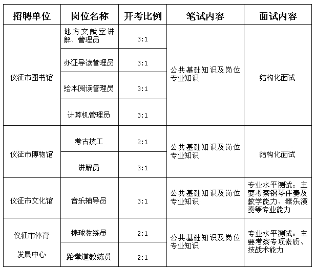 筆試采取閉卷考試方式,按照規(guī)定的開考比例進行(見下表)。主要測試公共基礎知識及報考崗位專業(yè)知識??荚嚥恢付ㄝo導用書,采用百分制計分。筆試具體時間、地點及相關要求以筆試準考證為準。