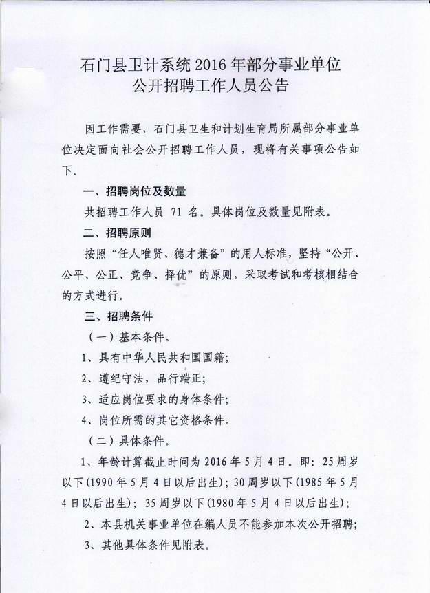 2016湖南石門縣衛(wèi)計(jì)系統(tǒng)事業(yè)單位招聘公告【招71人】