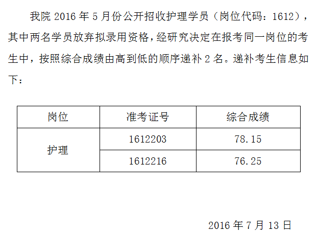 2016安徽蕪湖市中醫(yī)醫(yī)院招收護(hù)理學(xué)員遞補(bǔ)公告