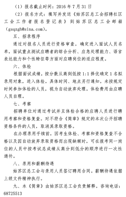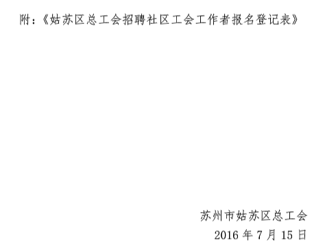 2016江蘇姑蘇區(qū)總工會招聘社區(qū)工會工作者公告【招1人】
