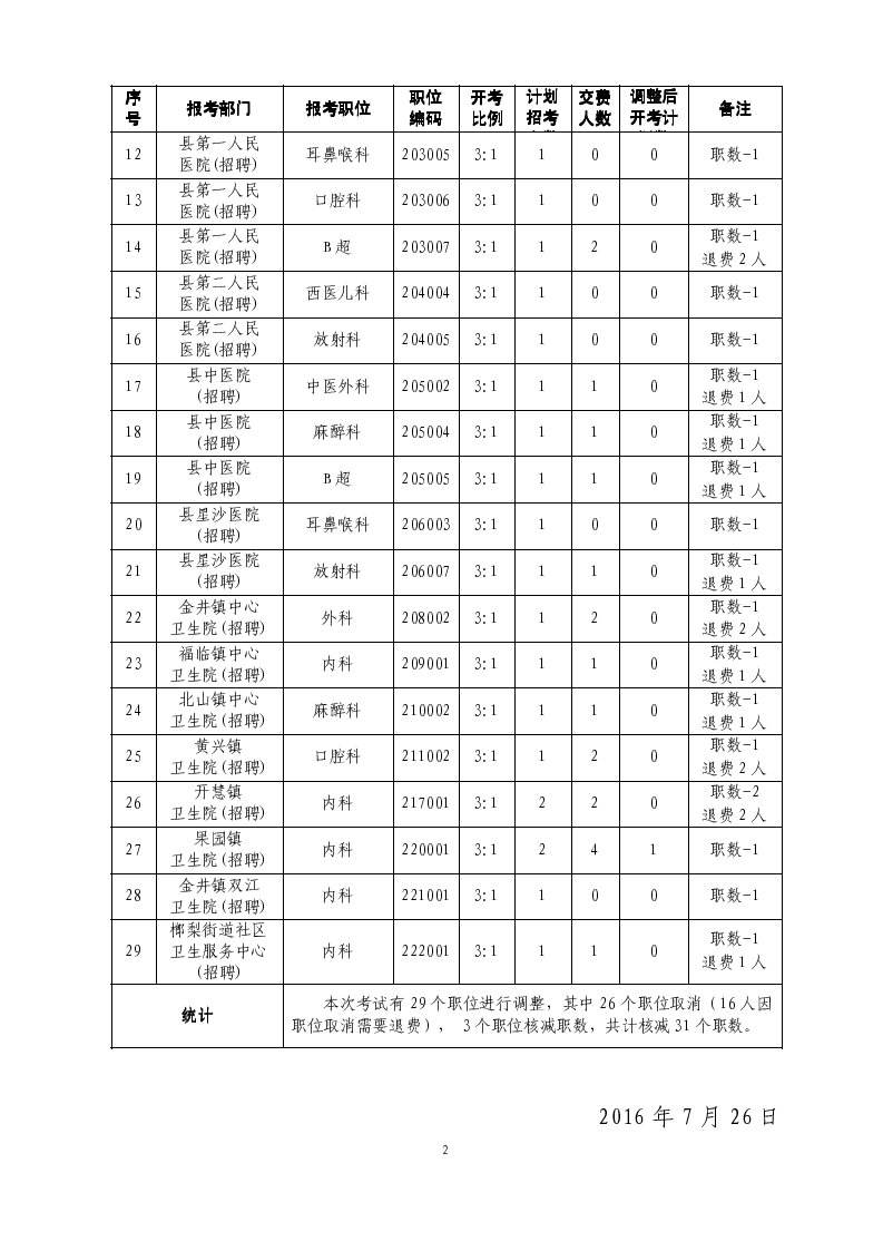 原標(biāo)題:長沙縣人力資源和社會局長沙縣衛(wèi)生和計劃生育局2016年7月公開選調(diào)(招聘)專業(yè)技術(shù)人員調(diào)整部分崗位計劃數(shù)的公告