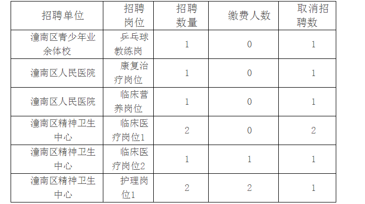 潼南區(qū)2016年三季度事業(yè)單位公開(kāi)招聘工作人員現(xiàn)場(chǎng)報(bào)名繳費(fèi)工作已經(jīng)結(jié)束,根據(jù)各崗位報(bào)名繳費(fèi)情況,按照《重慶市潼南區(qū)2016年三季度面向社會(huì)公開(kāi)招聘事業(yè)單位工作人員簡(jiǎn)章》相關(guān)規(guī)定,現(xiàn)對(duì)取消招聘名額的崗位予以公告。