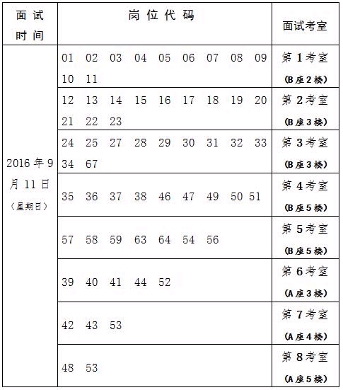 2、時間:2016年9月11日??忌衔?:00報到,7:30未報到視為棄權(quán)。上午8:00開始面試。