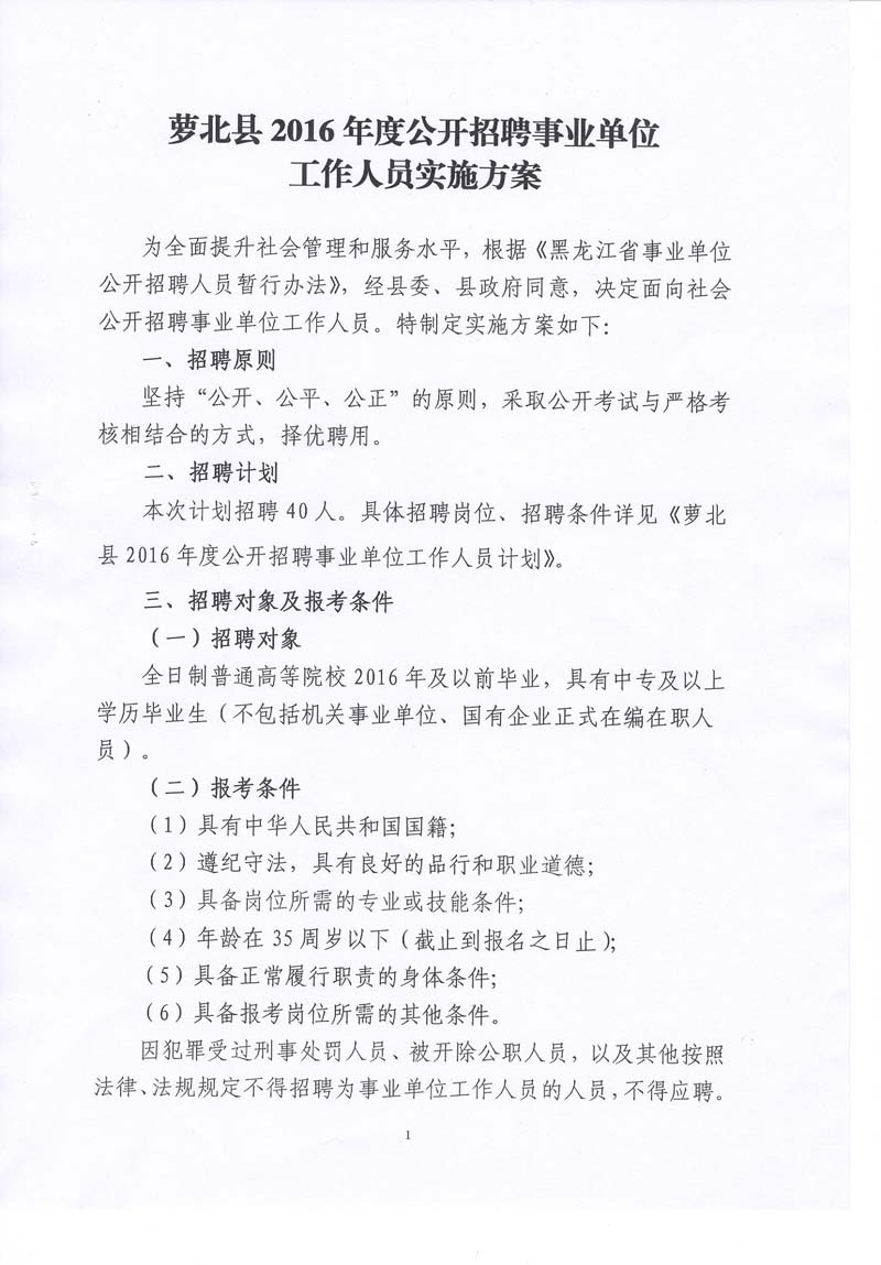 2016年度鶴崗市蘿北縣公開(kāi)招聘事業(yè)單位工作人員公告【40人】
