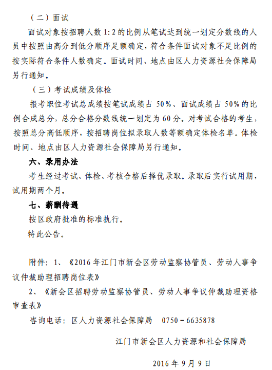 2016廣東江門市新會區(qū)人力資源和社會局招聘勞動監(jiān)察協(xié)管員公告【招2人】