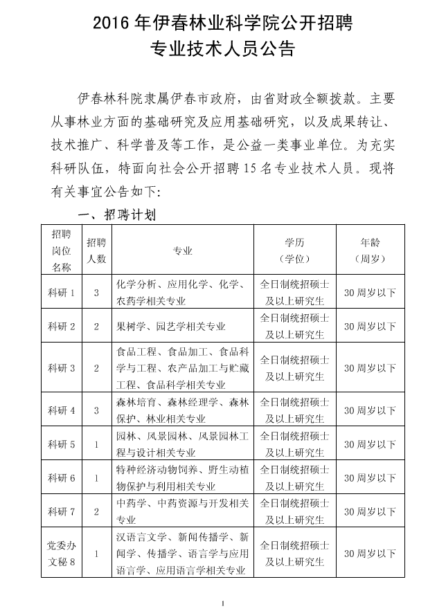 2016黑龍江伊春林業(yè)科學院招聘15名專業(yè)技術人員公告