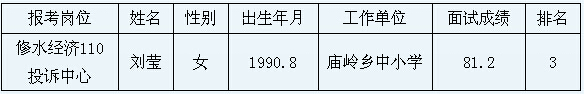 由于入闈修水縣經(jīng)濟(jì)發(fā)展服務(wù)聯(lián)動(dòng)投訴中心工作人員(簡(jiǎn)稱“修水經(jīng)濟(jì)110投訴中心”)張?bào)乙騻€(gè)人原因提出申請(qǐng)放棄選調(diào)資格?,F(xiàn)依據(jù)選調(diào)公告精神,遞補(bǔ)該選調(diào)崗位面試成績(jī)排名第三的劉瑩為入闈考察人員。