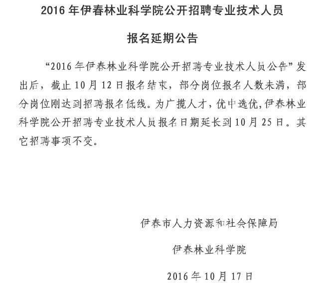 2016黑龍江伊春林業(yè)科學(xué)院招聘專業(yè)技術(shù)人員報(bào)名延期公告