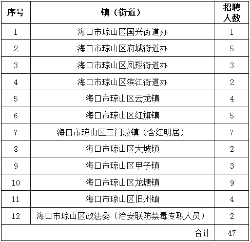 2017年海南省??谑协偵絽^(qū)各鎮(zhèn)街道辦招聘公告(47人)