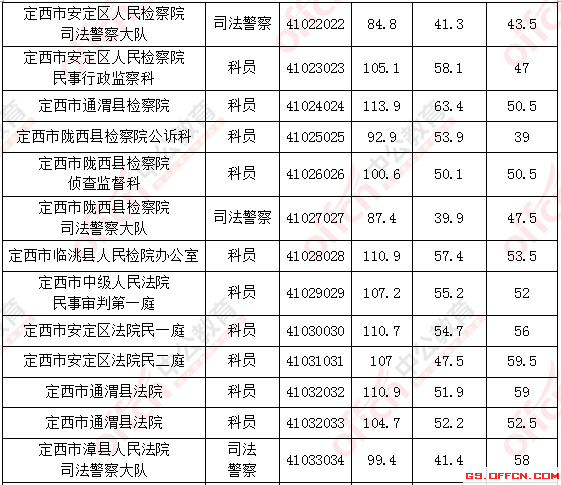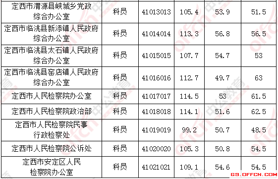 2017年甘肅定西公務(wù)員面試入圍最低分?jǐn)?shù)線