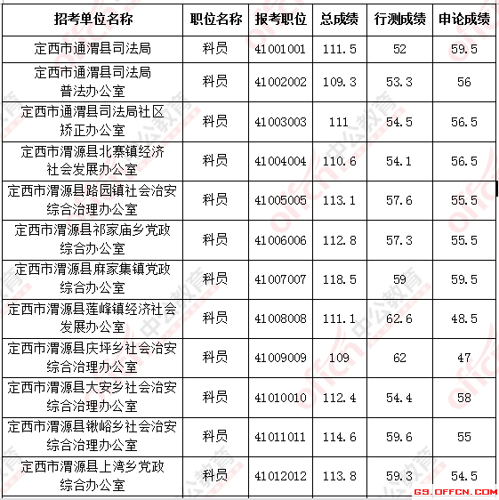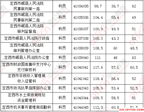 溫馨提示:根據(jù)甘肅省公務(wù)員考試招錄公告得知,甘肅省公務(wù)員面試人員確定方式為招錄單位在資格復(fù)審的基礎(chǔ)上,根據(jù)應(yīng)試人員筆試總成績從到低分的順序確定參加面試人員(筆試有一門缺考或一門成績?yōu)榱阏撸坏么_定為面試人選)。省、市州考錄辦分別按職位筆試成績,從到低分的順序,依次按計劃招錄人數(shù)與面試人數(shù)1∶3的比例確定面試人員。所以并沒有實際意義上的分?jǐn)?shù)線,以下內(nèi)容僅供參考。