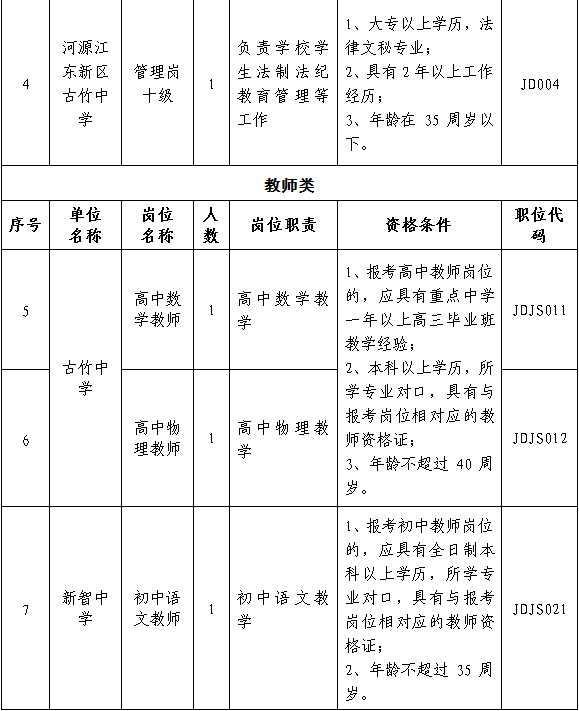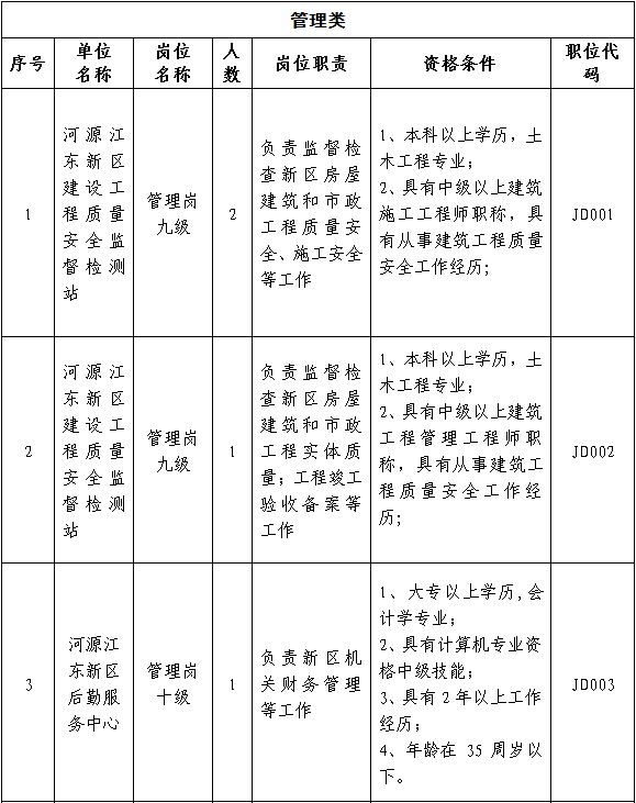 一、公開招考的單位名稱、崗位名稱、人數(shù)、崗位職責(zé)、資格條件和職位代碼。