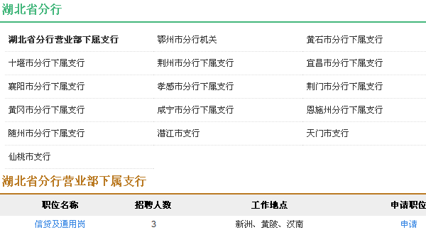 湖北省分行招聘職位