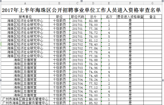 根據(jù)2017年上半年海珠事業(yè)單位面試名單來(lái)看。部分崗位筆試成績(jī)達(dá)到80分左右就可以進(jìn)入面試。