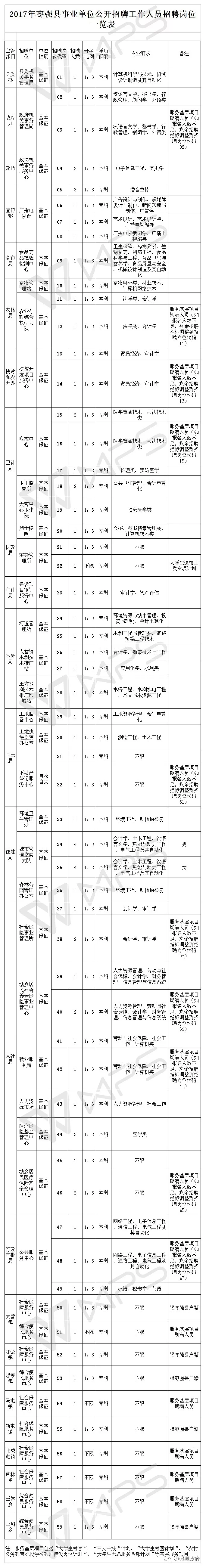 5、鄉(xiāng)鎮(zhèn)事業(yè)單位非服務(wù)基層項目期滿人員招聘崗位限棗強縣戶籍(詳見《2017年棗強縣事業(yè)單位公開招聘工作人員招聘崗位一覽表》“備注”欄);