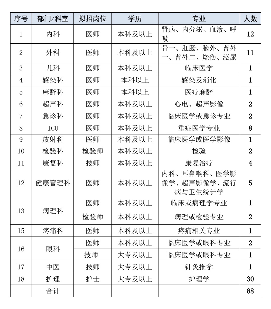 2、國家統(tǒng)招碩士及以上應(yīng)屆畢業(yè)生,有醫(yī)師執(zhí)照者、規(guī)培證者優(yōu)先。