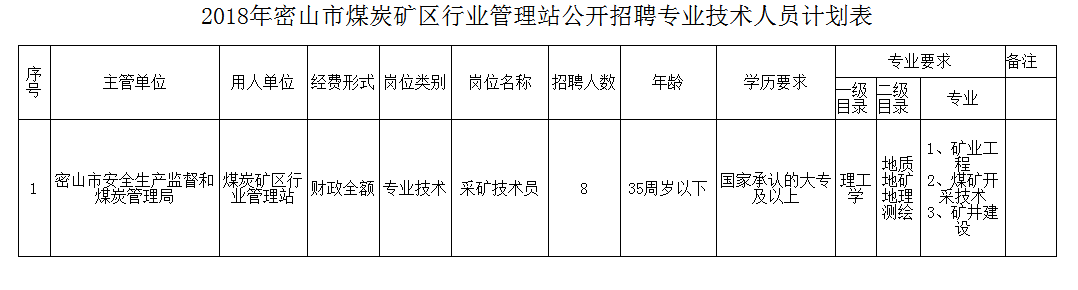 2018年密山市煤炭礦區(qū)行業(yè)管理站公開(kāi)招聘專(zhuān)業(yè)技術(shù)人員計(jì)劃表(拖拽圖片另查看)