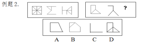 圖形推理試題主要考查應(yīng)考者抽象推理的能力。要求考生從四個(gè)備選答案中選擇最符合規(guī)律的一個(gè),替代題干中的問號(hào),使圖形呈現(xiàn)出一定的規(guī)律性。試題包括多種類型,僅舉其中一種類型為例。