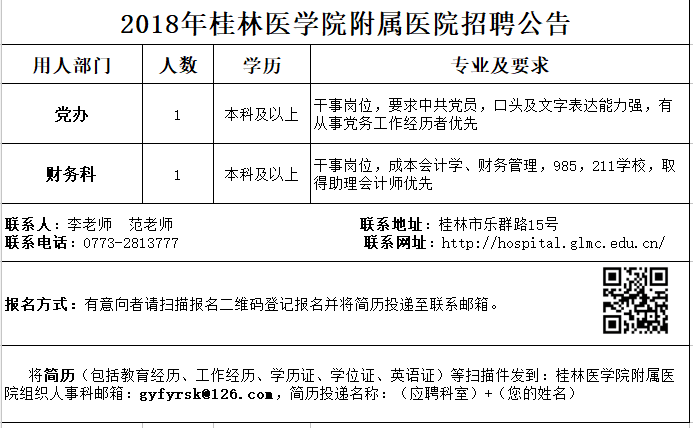 2018廣西桂林醫(yī)學(xué)院附屬醫(yī)院行政職能科室招聘公告【招2人】