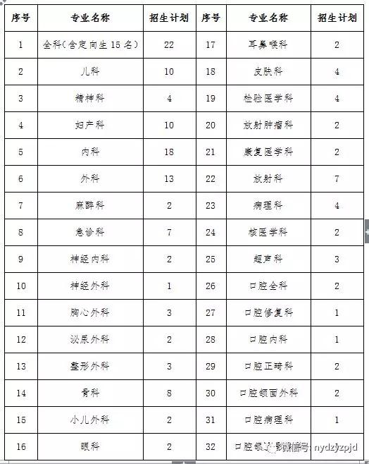 我院共有32個專業(yè)面向全國招收住院醫(yī)師規(guī)范化培訓對象,合計招收149人。優(yōu)先招錄緊缺專業(yè)(全科、婦產(chǎn)科、兒科、精神科、麻醉科),招生對象必須服從專業(yè)調(diào)整。具體招收專業(yè)及名額如下:
