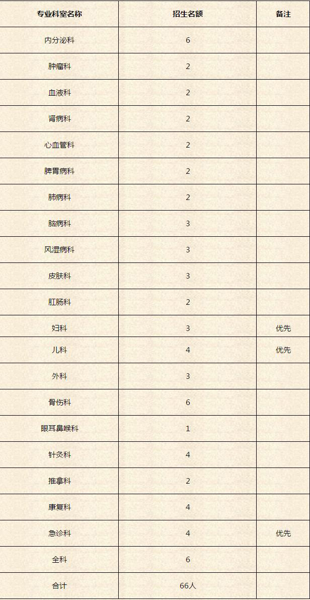 醫(yī)院21個(gè)專業(yè)科室將面向全國(guó)招收住院醫(yī)師規(guī)范化培訓(xùn)住培對(duì)象,具體專業(yè)及招生名額具體見表1。