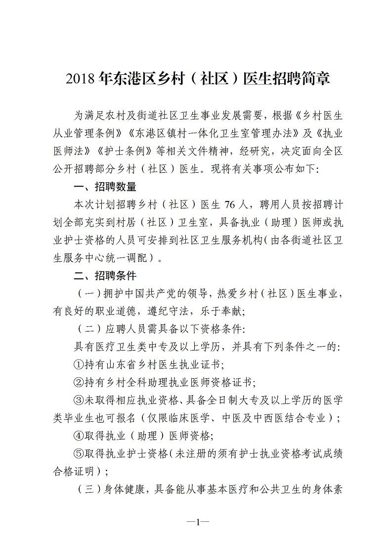 2018山東東港區(qū)鄉(xiāng)村(社區(qū))醫(yī)生招聘76人簡章