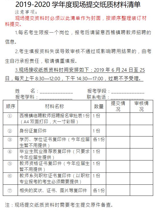 ①西樵鎮(zhèn)臨聘教師招聘報(bào)名審批表1份(見(jiàn)附件3,要求單張A4紙雙面打印,相片為近期大一寸彩照);