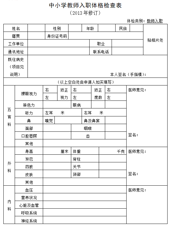 我局根據(jù)各學(xué)科個(gè)人試教成績(jī)從高到低的順序,按照學(xué)科招聘計(jì)劃人數(shù),以1:1的比例確定考試入選人員名單,入選人員可到佛山市范圍內(nèi)鎮(zhèn)級(jí)及以上公立醫(yī)院體檢,體檢項(xiàng)目按《廣東省教師資格申請(qǐng)人員體格檢查標(biāo)準(zhǔn)(2013年修訂)》要求執(zhí)行。同時(shí)到戶籍所在地或居住地公安部門和計(jì)生部門按《招聘教師政審表》的要求加蓋意見(jiàn),做好教師招聘政審工作。并在7月8日前將《中小學(xué)教師入職體格檢查表》和《招聘教師政審表》上交給西樵鎮(zhèn)教育局潘老師。