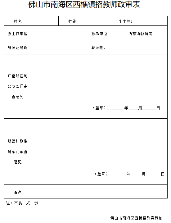 3.西樵鎮(zhèn)鎮(zhèn)聘教師招聘報(bào)名審批表