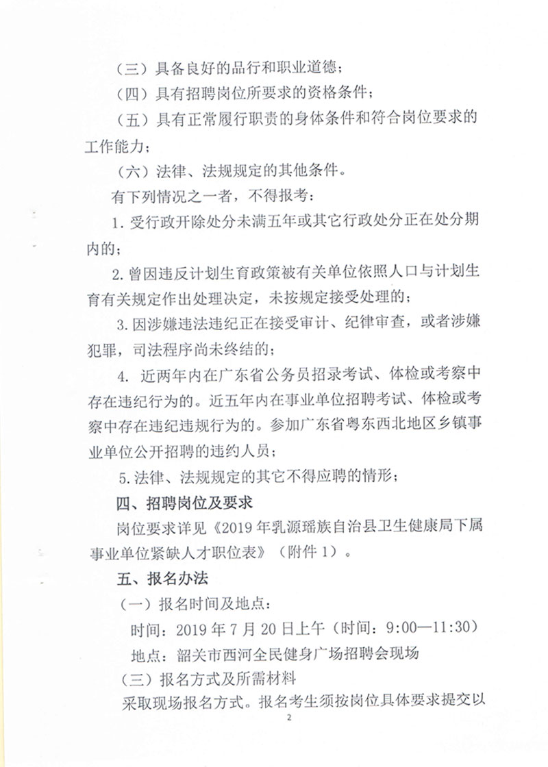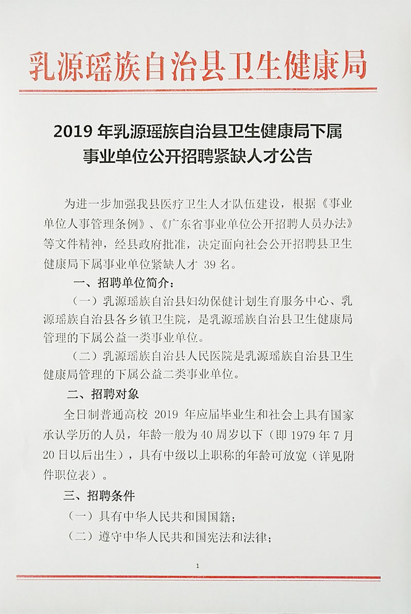 原標(biāo)題:2019年乳源瑤族自治縣衛(wèi)生健康局下屬事業(yè)單位公開招聘緊缺人才公告