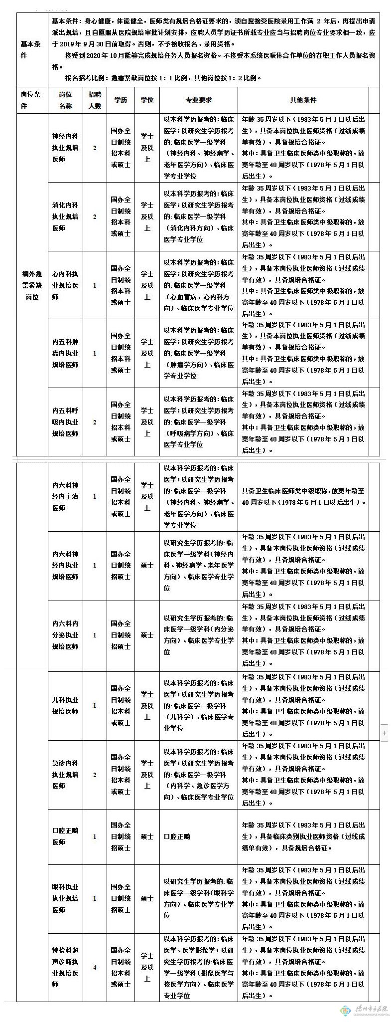 原標(biāo)題:市立醫(yī)院院部第二批自主招聘臨床醫(yī)技崗位招考簡(jiǎn)章2019.10.24
