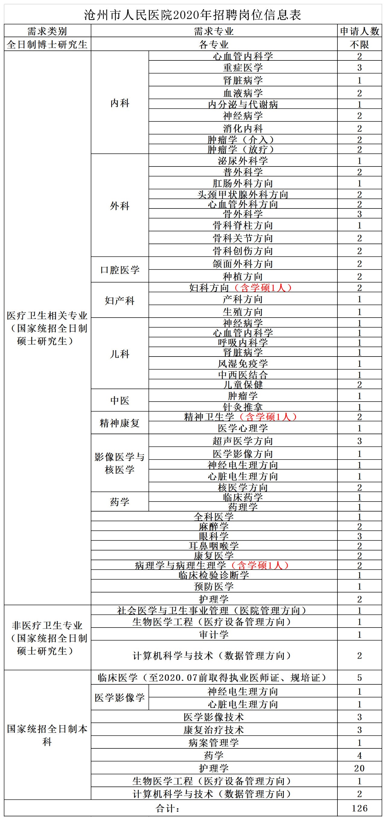 2020滄州市人民醫(yī)院招聘126人公告
