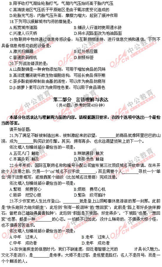 2012年福建秋季省考行測(cè)