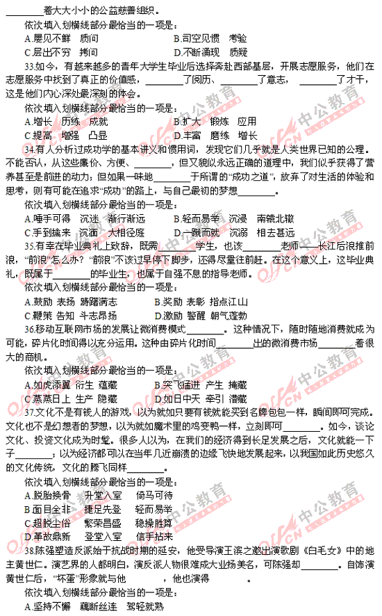 2012年福建秋季省考行測