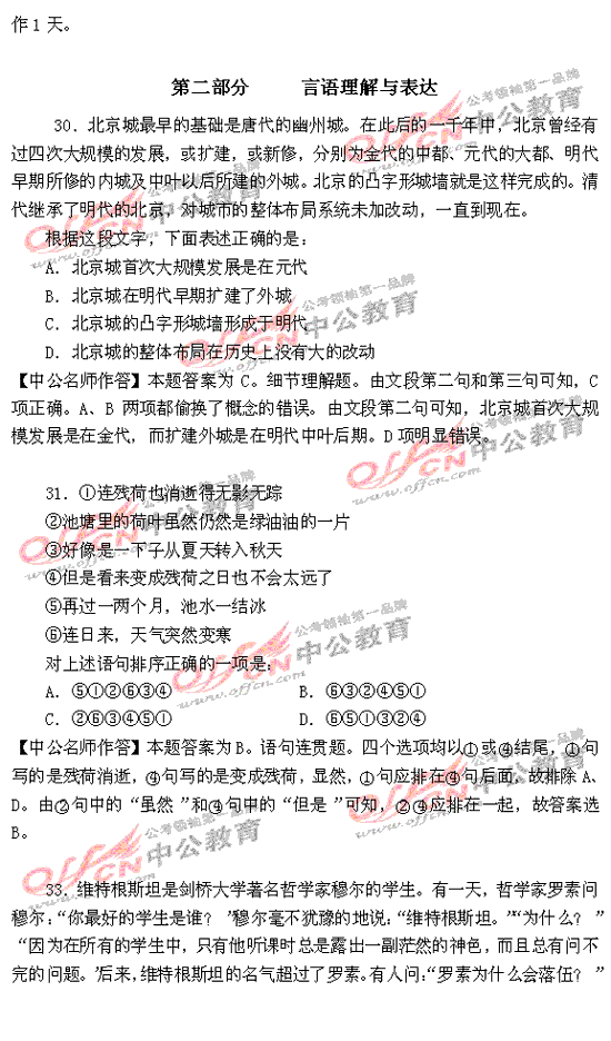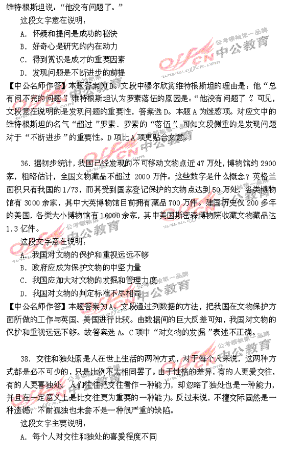 福建省2010年秋季公務(wù)員考試行測及解析