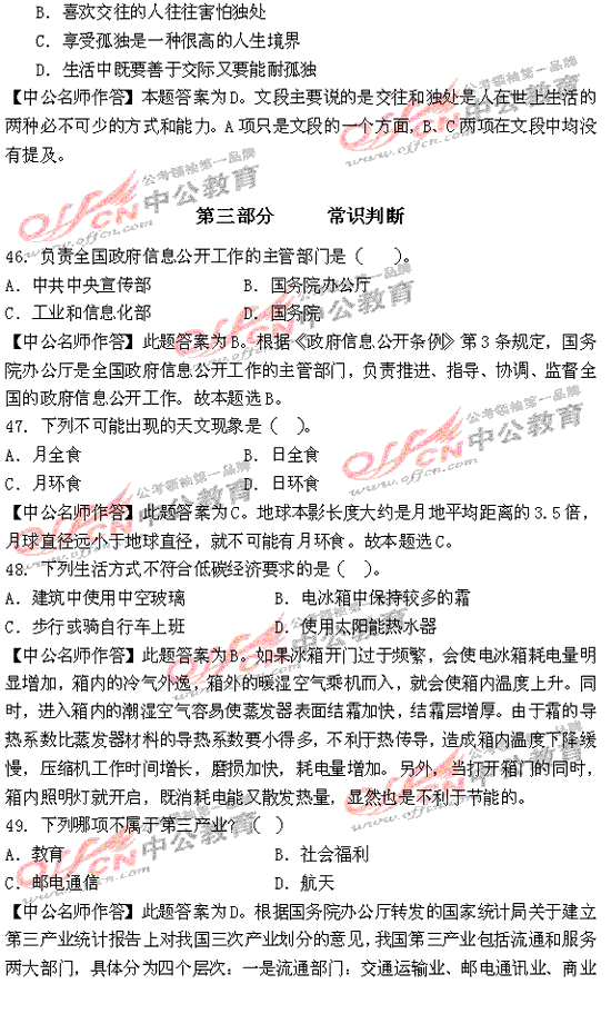 福建省2010年秋季公務(wù)員考試行測(cè)及解析