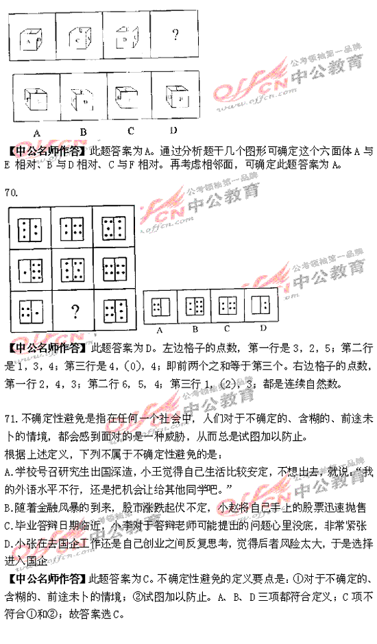 福建省2010年秋季公務員考試行測及解析