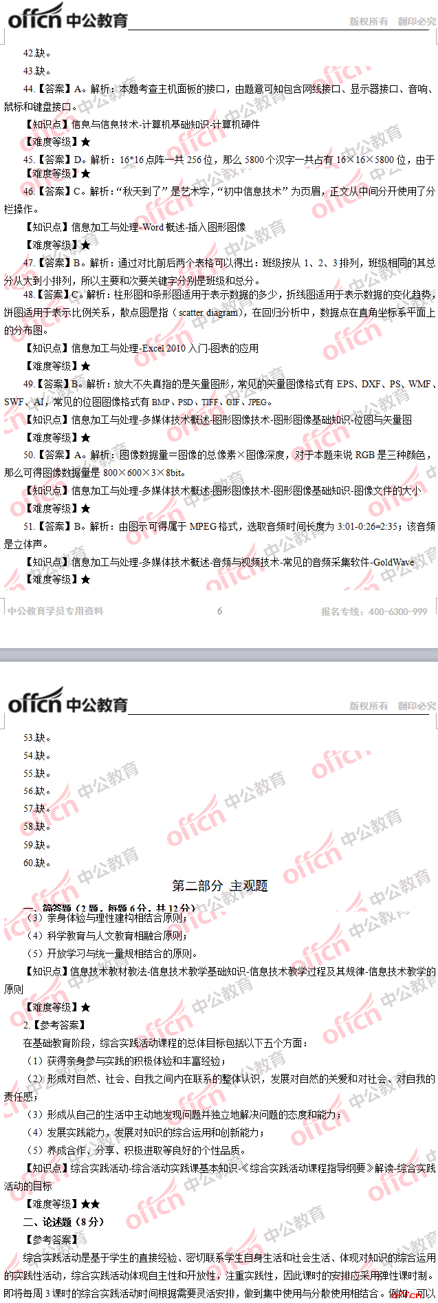 2017年江西教師招聘《初中信息技術(shù)》答案及解析