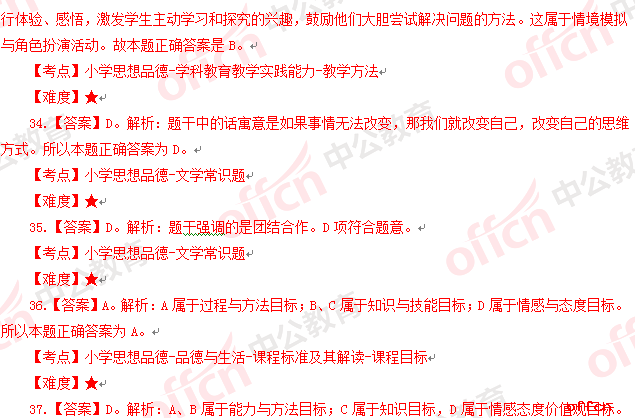 2017年江西教師招聘《小學品德》試題答案及解析