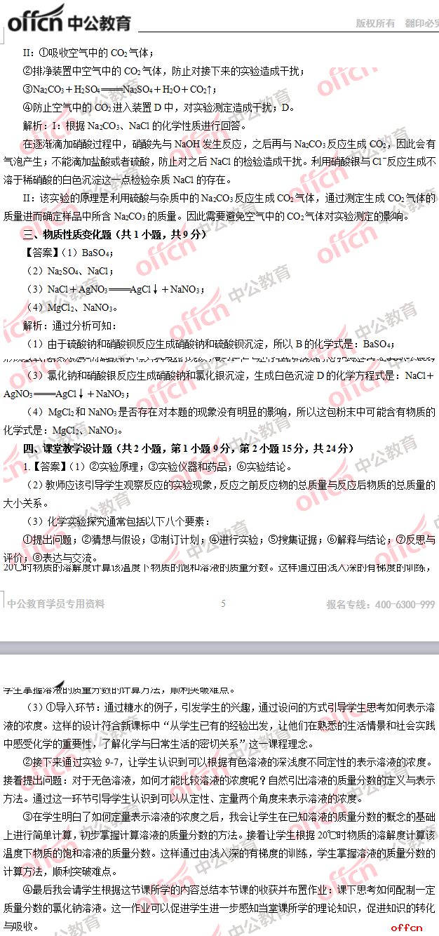 2017年江西教師招聘《初中化學(xué)》試題答案及解析