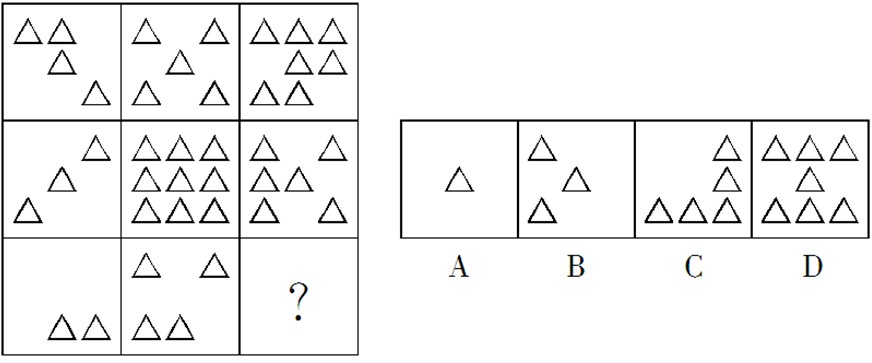 76.從所給的四個選項中,選擇最合適的一個填入問號處,使之呈現(xiàn)一定的規(guī)律性。