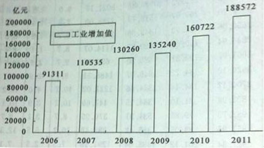 2006-2011年我國(guó)全部工業(yè)增加值