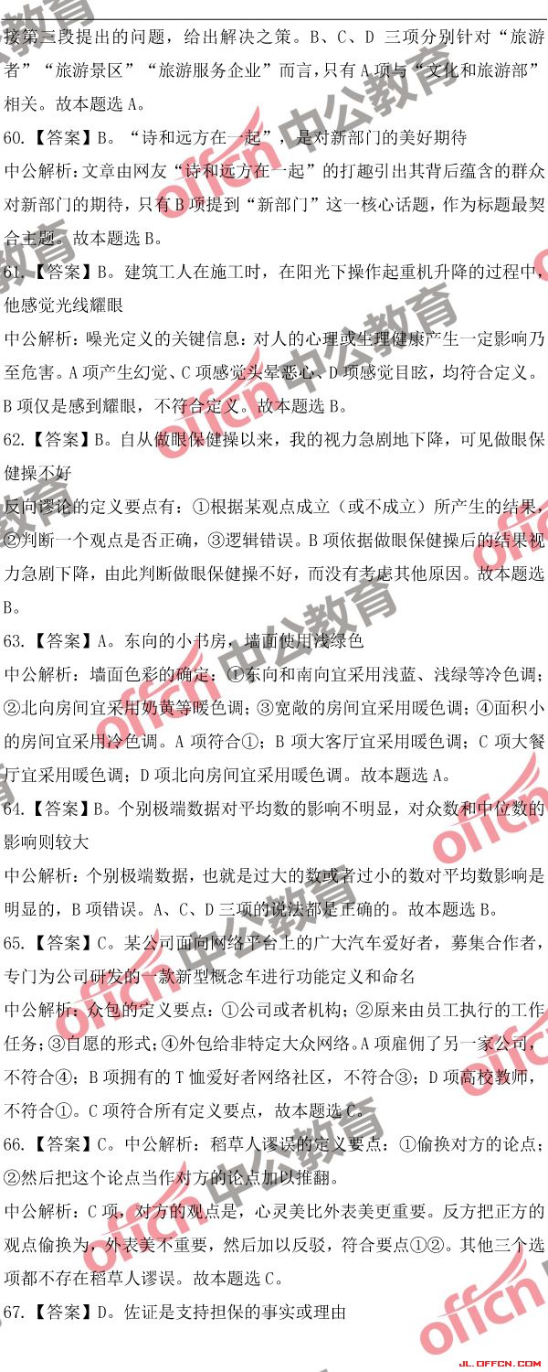 2018吉林公務(wù)員考試行測(cè)(甲)歷年參考答案及解析