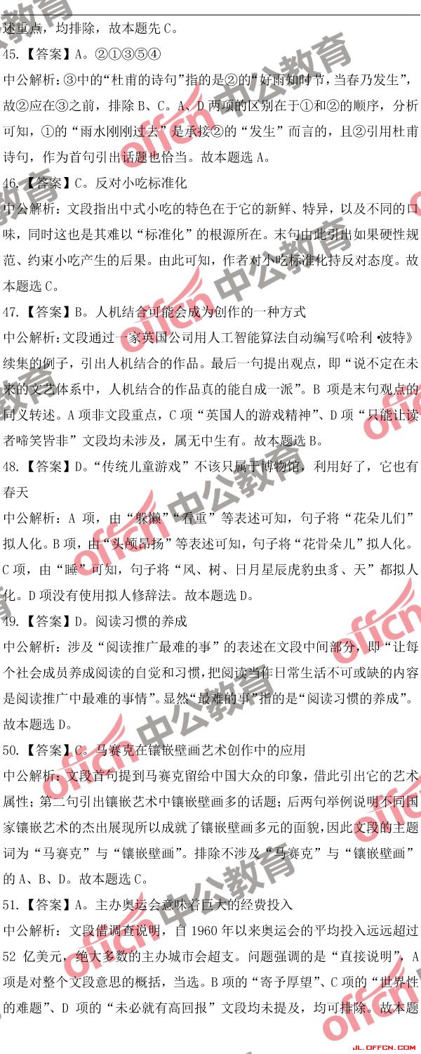 2018吉林公務(wù)員考試行測(甲)歷年參考答案及解析(8)[/page]