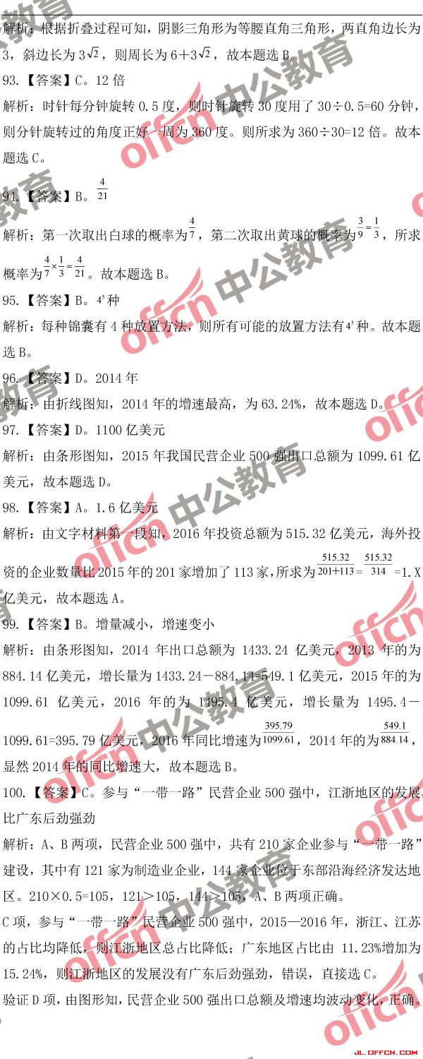 2018吉林公務(wù)員考試行測(乙)歷年參考答案及解析