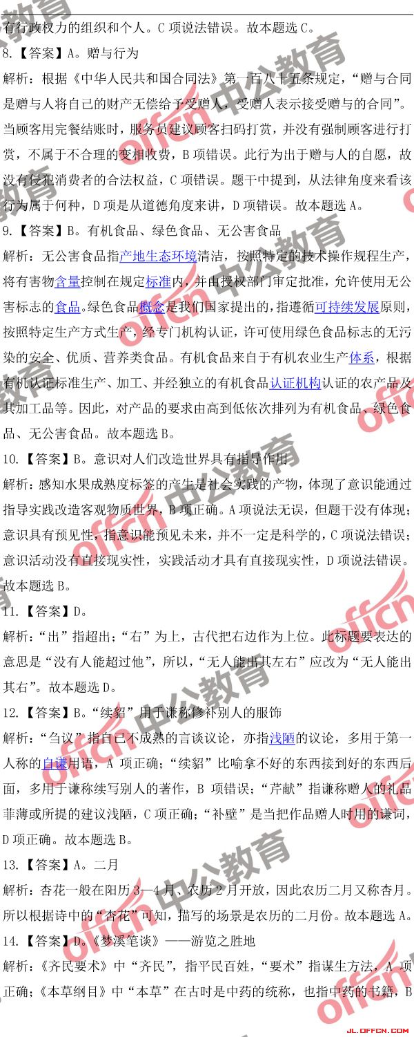 2018吉林公務(wù)員考試行測(cè)(乙)歷年參考答案及解析