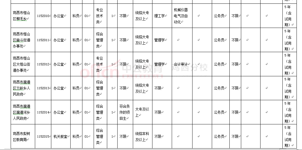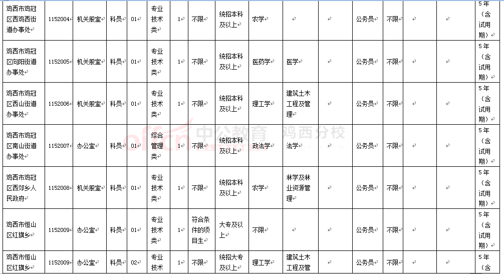 2015年黑龍江省艱苦邊遠(yuǎn)地區(qū)公務(wù)員考試招錄雞西地區(qū)職位表